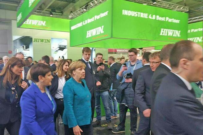 漢諾威工業(yè)展開展首日,德國總理梅克爾造訪上銀科技展臺,上銀主管表示,有了梅克爾到訪幫忙造勢,開展以來人潮絡繹不絕。
