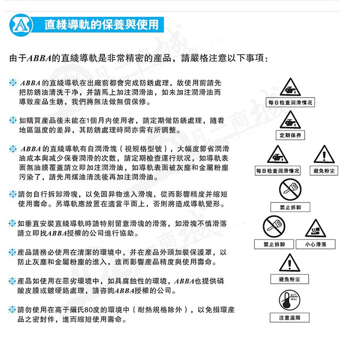 ABBA直線導(dǎo)軌(ABBA Linear)是臺(tái)灣國(guó)標(biāo)直線科技股份有限公司生產(chǎn)。成立于1999年成立至今,是臺(tái)灣第一家擁有四排珠自潤(rùn)專利并實(shí)際導(dǎo)入量產(chǎn)的線性滑軌專業(yè)制造廠。國(guó)際直線科技累積十八年精密滾珠螺桿的制造經(jīng)驗(yàn),掌握核心關(guān)鍵技術(shù),并結(jié)合臺(tái)灣科技大學(xué)的線性滾珠滑軌研發(fā)能力,順利于2000年完成量產(chǎn)計(jì)畫,并獲得多項(xiàng)世界專利?成功地將產(chǎn)品推向世界舞臺(tái),目前擁有自有品牌的經(jīng)銷網(wǎng)遍及臺(tái)灣、大陸、韓國(guó)、日本、歐美等地。