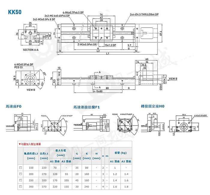 • 線性模組HIWIN模組(工業(yè)機(jī)器人)KK50系列KK5002C-250A1-F1