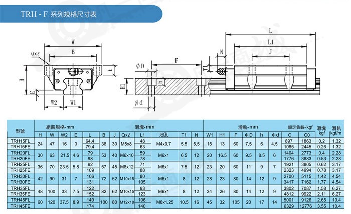 TBI直線導軌為一種滾動導引,借由鋼珠在滑塊與滑軌之間作無限滾動循環,負載平臺能沿著滑軌輕易地以高精度作線性運動。與傳統的滑動導引相較,滾動導引的摩擦系數可降低至原來的1/50,由于起動的摩擦力大大減少,相對的較少無效運動發生,故能輕易達到μm級進給及定位。再加上滑塊與滑軌間的束制單元設計,使得直線導軌可同時承受上下左右等各方向的負荷,上述陳列特點并非傳統滑動導引所能比擬,因此機臺若能配合滾珠螺桿,使用直線導軌作導引,必能大幅提高設備精度與機械效能。