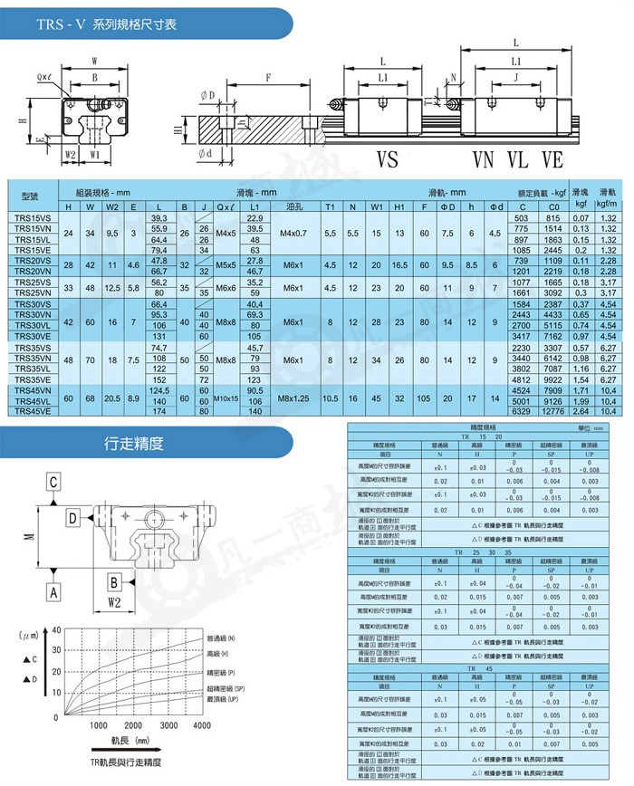 TBI直線導(dǎo)軌為一種滾動導(dǎo)引,借由鋼珠在滑塊與滑軌之間作無限滾動循環(huán),負(fù)載平臺能沿著滑軌輕易地以高精度作線性運動。與傳統(tǒng)的滑動導(dǎo)引相較,滾動導(dǎo)引的摩擦系數(shù)可降低至原來的1/50,由于起動的摩擦力大大減少,相對的較少無效運動發(fā)生,故能輕易達到μm級進給及定位。再加上滑塊與滑軌間的束制單元設(shè)計,使得直線導(dǎo)軌可同時承受上下左右等各方向的負(fù)荷,上述陳列特點并非傳統(tǒng)滑動導(dǎo)引所能比擬,因此機臺若能配合滾珠螺桿,使用直線導(dǎo)軌作導(dǎo)引,必能大幅提高設(shè)備精度與機械效能。