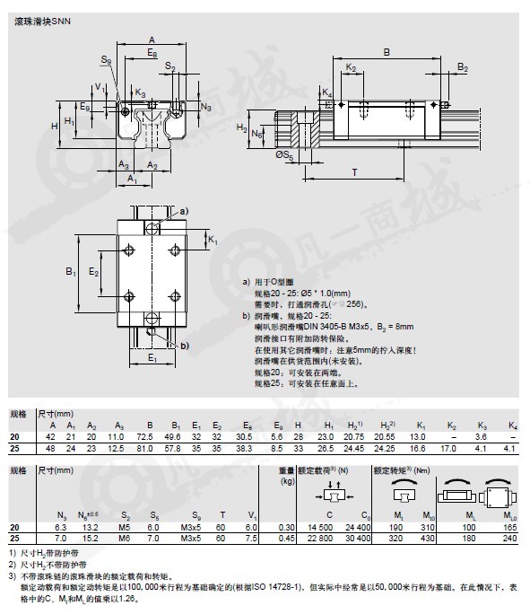 加裝件可以從滾珠滑塊的上面或下面通過(guò)螺紋連接安裝1)