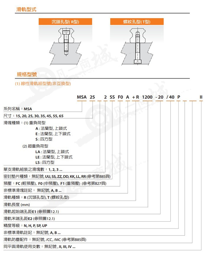 MSA系列銀泰直線導軌采用4列圓弧接觸式及45°觸角的鋼珠列設計,提供徑向、反徑向及橫方向四方向的相同額定負荷能力,無論X、Y、Z等軸的各種安裝方式都可以使用,并且可在維持低摩擦阻力情況下均勻的施以預壓,增強四個受力方向的剛性,特別適合高精度與高負荷的運動方式。